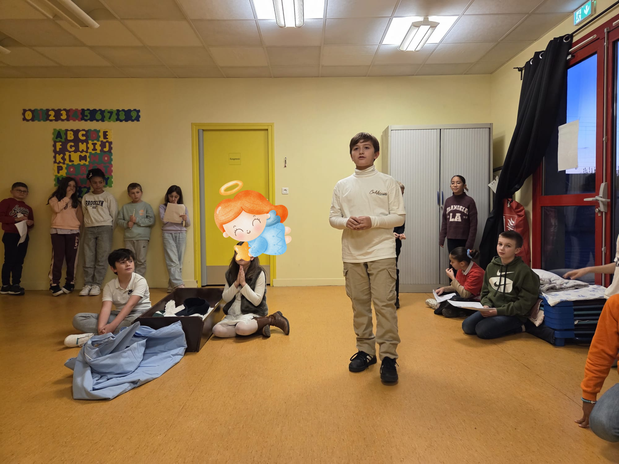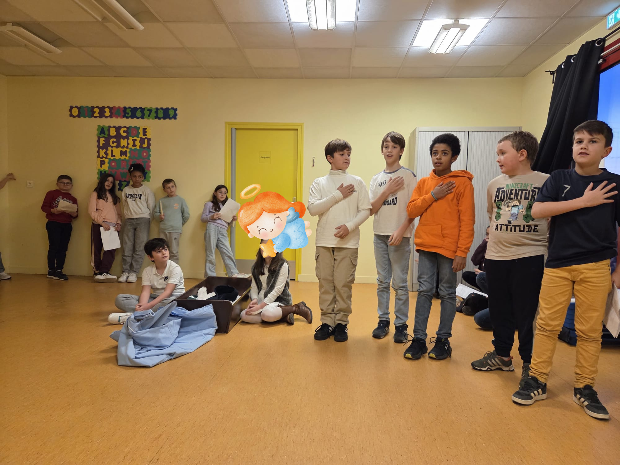 Le casting pour choisir les rôles a eu lieu dans la classe de Bénédicte. Tous les élèves de cycle 3, donc les CM1 et les CM2, ont pu venir se présenter pour espérer obtenir un rôle dans la crèche. Nous étions tous un peu stressés, mais surtout très heureux de participer à ce moment important.