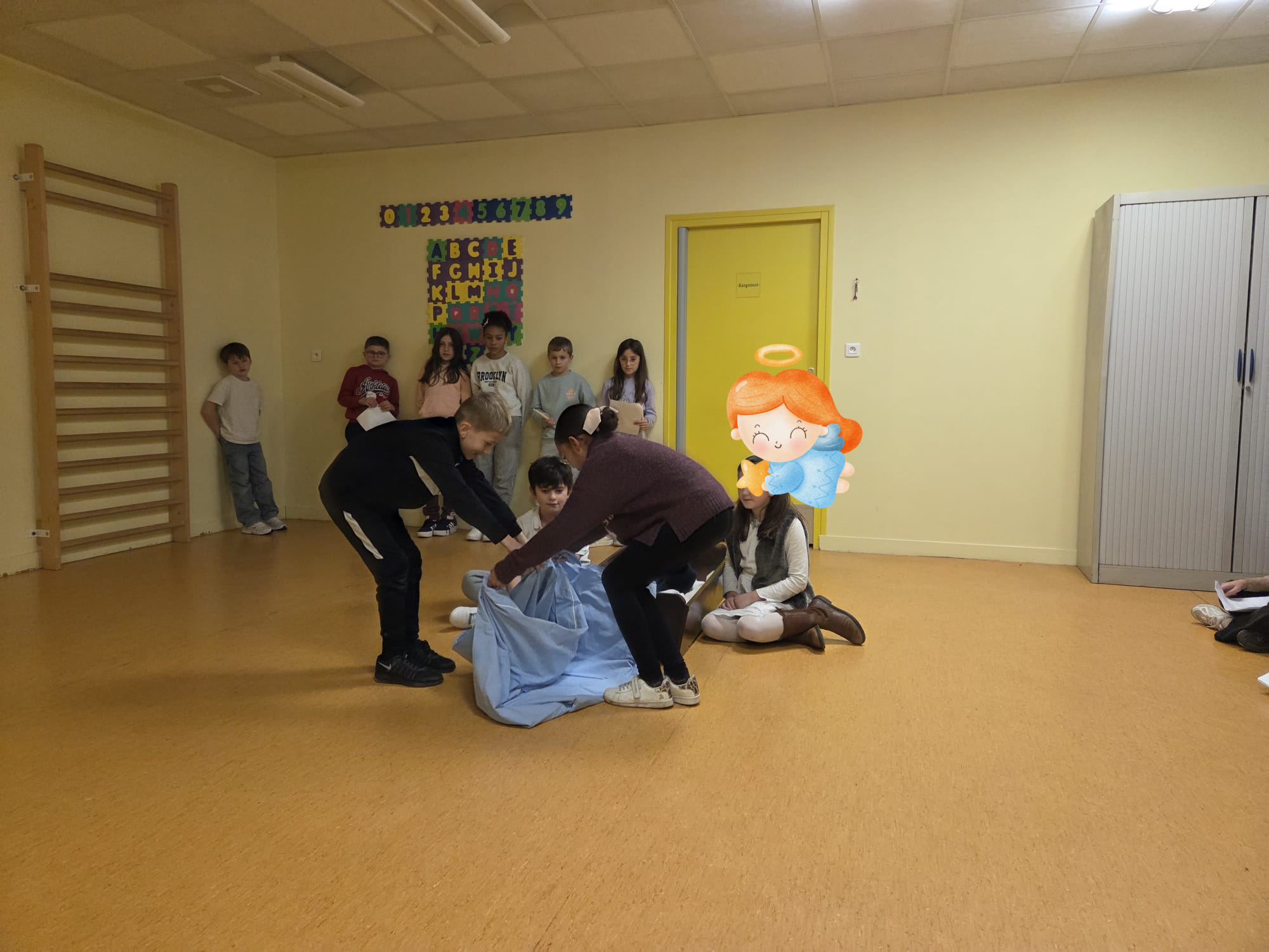 Les répétitions ont lieu chaque vendredi midi et nous avons même eu une répétition supplémentaire ce mercredi en salle de motricité, ce qui nous a permis de mieux nous déplacer et de tester la mise en scène.