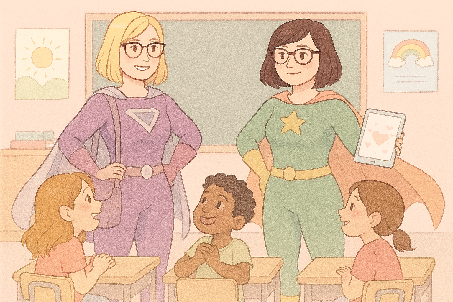 Marion est toujours souriante, elle prend le temps de parler aux élèves, de leur demander comment ça va, de leur donner un encouragement quand ça ne va pas bien. Stéphanie est très patiente : elle sait expliquer doucement, avec des gestes, avec des exemples, jusqu’à ce qu’on comprenne.